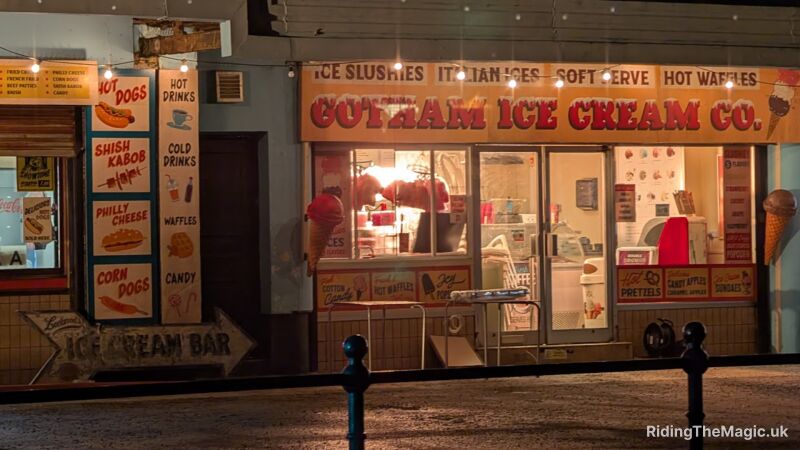 For anyone local to the Wirral and New Brighton area, the sight of the Chick’n Hut changed to Len’s Chicken, hot dog stands, and a Gotham Ica Cream shop was exciting. The speed and magic with which the film crews props team worked was nothing short of amazing to complete the transformation